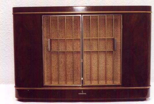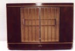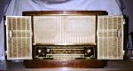 Auf den ersten Blick waren dabei die völlig geschwärzten Bespannstoffe an den Türen und Lautsprechern besonders unangenehm, die ja gerade bei diesem Radio im Vordergrund stehen und damit dem Betrachter sofort ins Auge springen, sowie die Wasserschäden, die die Politur absplittern ließ.