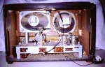 Danach konnten wir uns den Kondensatoren widmen, die natürlich wieder fast alle getauscht werden mußten. Lediglich der Siebelko für die Anodenspannung war glücklicherweise intakt. Nach dem Wechsel der Kondensatoren, dem obligatorischen Reinigen der Kontakte des Bereichsschalters und der Beseitigung der "Bastelstellen", konnte das Chassis am Trenntrafo in Betrieb genommen werden.